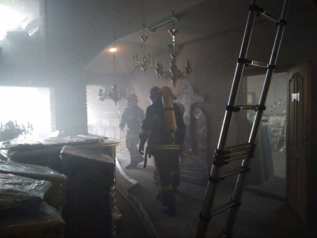 Згідно з повідомленням, у виробничій будівлі підприємства «Вечірній дзвін», яке займається виробництвом художніх виробів і вишивкою, зайнялося перекриття біля комину.