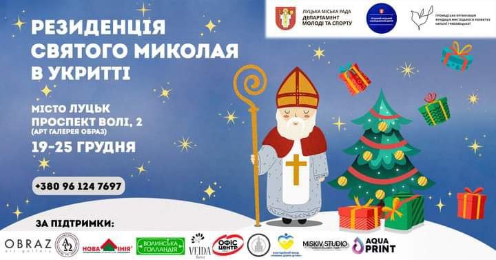 З 19 до 25 грудня 2022 у Луцьку в арт галереї «Образ» на проспекті Волі, 2 функціонуватиме резиденція святого Миколая в укритті. Вона працюватиме з 13:00 до 19:00 щоденно.