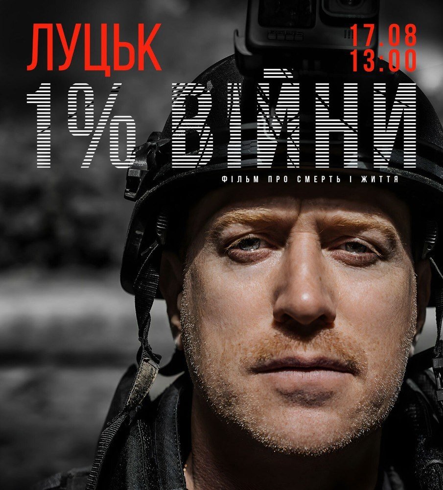 Уперше в Луцьку волонтер Денис Христов та його команда презентують документальний фільм «1% війни». Подія відбудеться 17 серпня о 13:00 у кінотеатрі «Мультиплекс» (РЦ «Промінь»). Ініціатор – громадська організація «Любарт Фаундейшн».