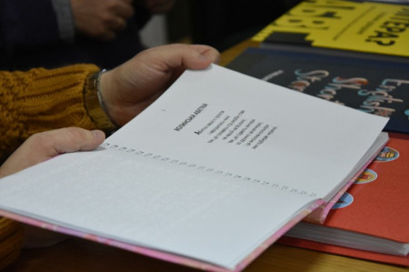 У свою чергу голова ГО «Генерація успішної дії» Віталій Ткачук представив нові видання книжок, надрукованих шрифтом Брайля. До них увійшли «Волинська абетка» Йосипа Струцюка, «Луцьк від А до Я» управління туризму та промоції Луцької міської ради, словник-довідник «Велика чи мала літера» В.В. Жайворонка та «English short stories».