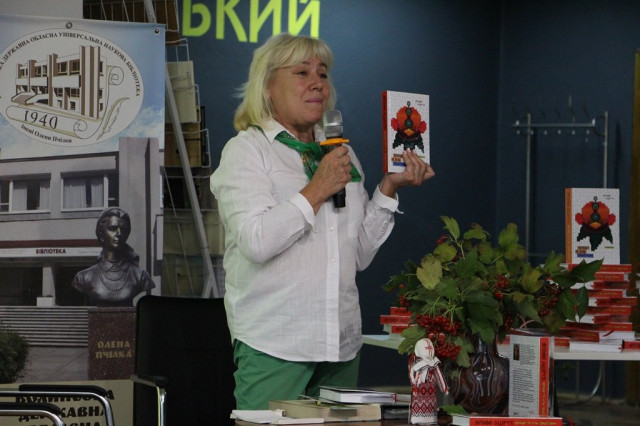 Авторка подарувала кілька примірників і листівок бібліотеці.Модерувала захід завідувачка відділу міського абонементу Оксана Ковальчук.