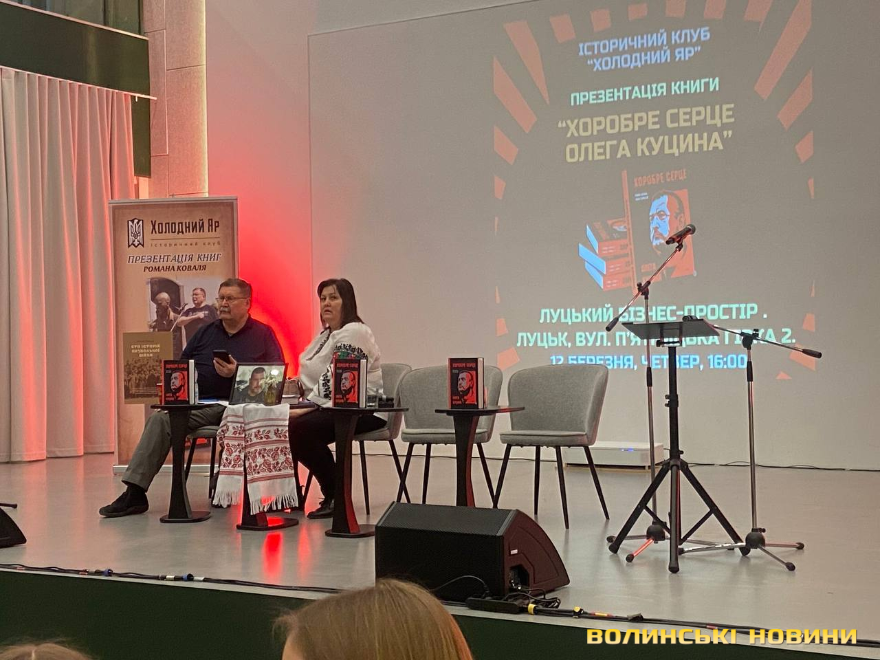 12 березня у Луцькому бізнес-просторі відбулася презентація книги «Хоробре серце Олега Куцина», присвяченої життю українського військового і громадського діяча. Напередодні Дня добровольця автори – історик і письменник Роман Коваль та дослідниця Ірина Гармасій – розповіли про роботу над книгою та поділилися історіями про людину, яка стала символом добровольчого руху.