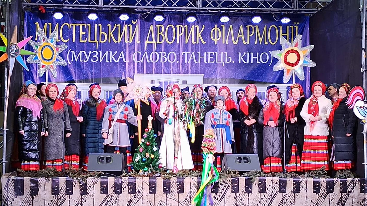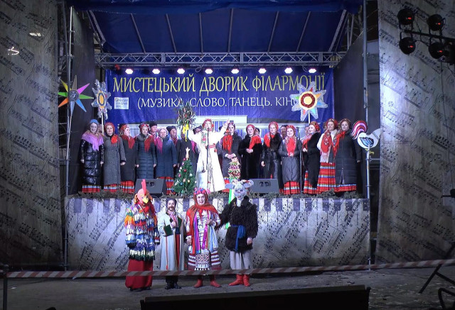 Відкриття мистецького дворика Волинської обласної філармонії відбулося 12 січня цього року й означилося святково-обрядовим дійством «Щедрий вечір, добрий вечір». На виконання вимог локдауну згадане дійство відбулося без глядачів – як зйомка рекламного відеофільму. Лунали урочисті й зворушливі колядки, щедрівки, ліричні пісні різдвяно-новорічної тематики у виконанні Волинського державного академічного українського народного хору (художній керівник і головний диригент – заслужений діяч мистецтв України Олександр Стадник), дуету в складі заслуженої артистки України Галини Овсійчук та Соломії Денисюк, народного артиста України Василя Чепелюка, юних виконавців Анни, Віктора та Марії Єфіменків. Обов’язковим атрибутом були символічні зображення Вифлеємської зорі (роль звіздарів виконували Віктор Єфіменко та Ілля Мартинович). Не обійшлося й без водіння Меланки, Василя, Кози, Півня (у сповненій доброго гумору сценці взяли участь Василь Вірста, Юлія Воробйова, Ярослав Смирнов, Володимир Вітрук). Постановку здійснила заслужена діячка мистецтв України Ірина Хмілевська, а ведучою була лауреатка премії імені Агатангела Кримського Оксана Єфіменко.