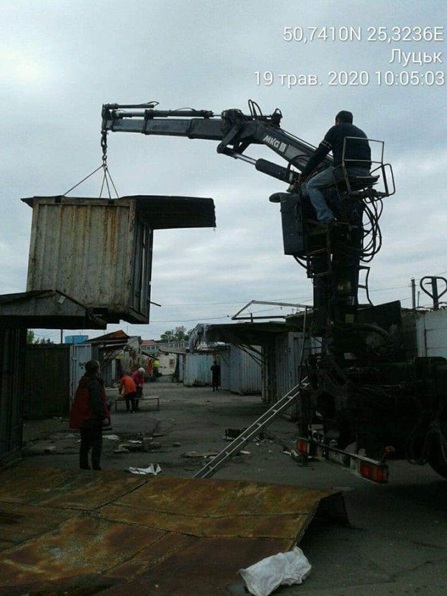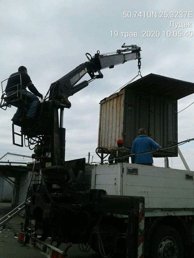 На Центральному ринку у Луцьку тривають роботи із вивезення контейнерів.