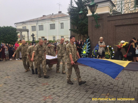 В обласному центрі Волині розпочалося прощання з загиблим на Донеччині від кулі снайпера старшим лейтенантом 128-ї окремої механізованої бригади Георгієм Ольховським.