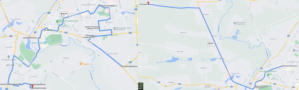 У зворотному напрямку: завод «СКФ Україна» – б-р Дружби Народів – вул. Бенделіані – вул. Станіславського – Новий ринок – вул. Львівська – вул. Потебні (із заїздом до ЛПЕ) – вул. Гнідавська – вул. Данила Галицького – вул. Ковельська – вул. Глушець – вул. Паркова – просп. Волі – вул. Шопена – просп. Перемоги – просп. Соборності – вул. В’ячеслава Чорновола – вул. Ветеранів – просп. Відродження – вул. Софії Ковалевської – вул. Мазепи – вул. Декабристів – просп. Відродження – вул. Рівненська – Київський майдан – вул. Дубнівська», – зазначив автор петиції.Автобусом №5 він запропонував сполучити залізничний вокзал у Луцьку та село Моташівка та пустити наступним маршрутом: просп. Грушевського – вул. Винниченка – вул. Словацького – вул. Богдана Хмельницького – вул. Ковельська – с. Зміїнець – с. Милуші – с. Княгининок – с. Моташівка. У зворотному напрямку: с. Моташівка – с. Княгининок – с. Милуші – с. Зміїнець – вул. Ковельська – вул. Глушець – вул. Паркова – вул. Винниченка – просп. Грушевського – залізничний вокзал.