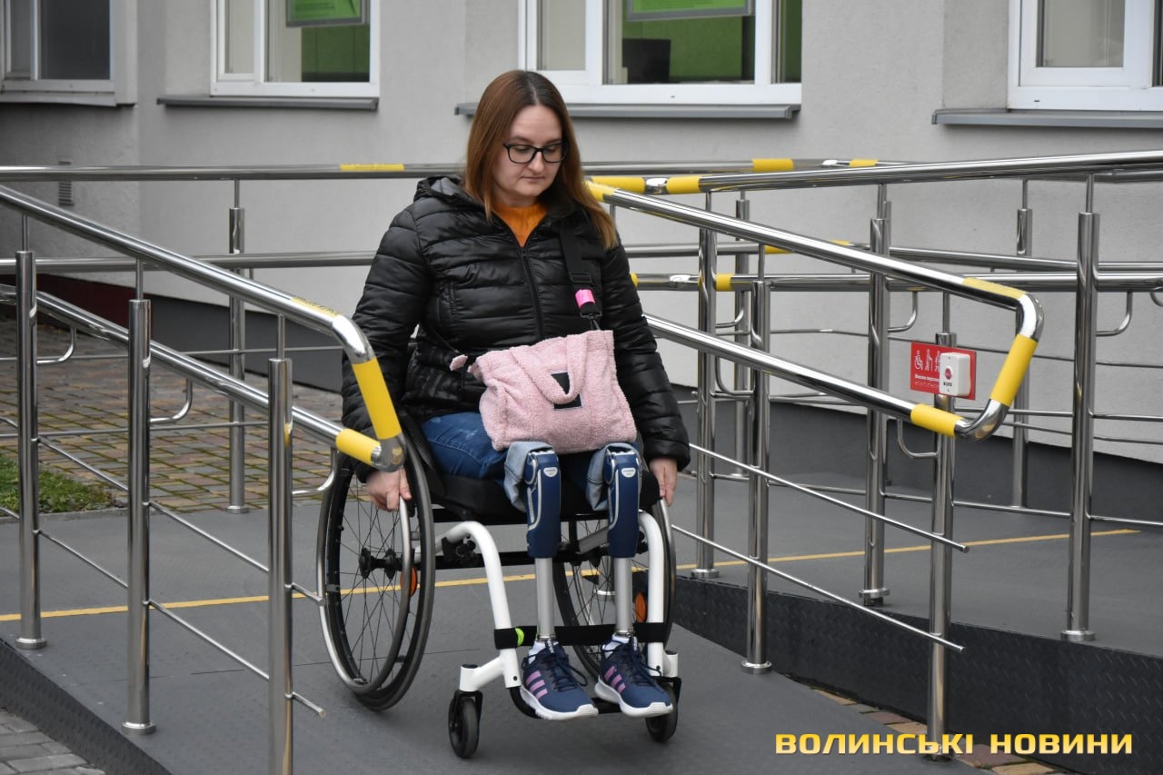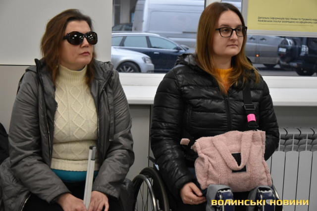 У Луцьку протестували перше відділення банку, пристосоване для людей з інвалідністю. Фото