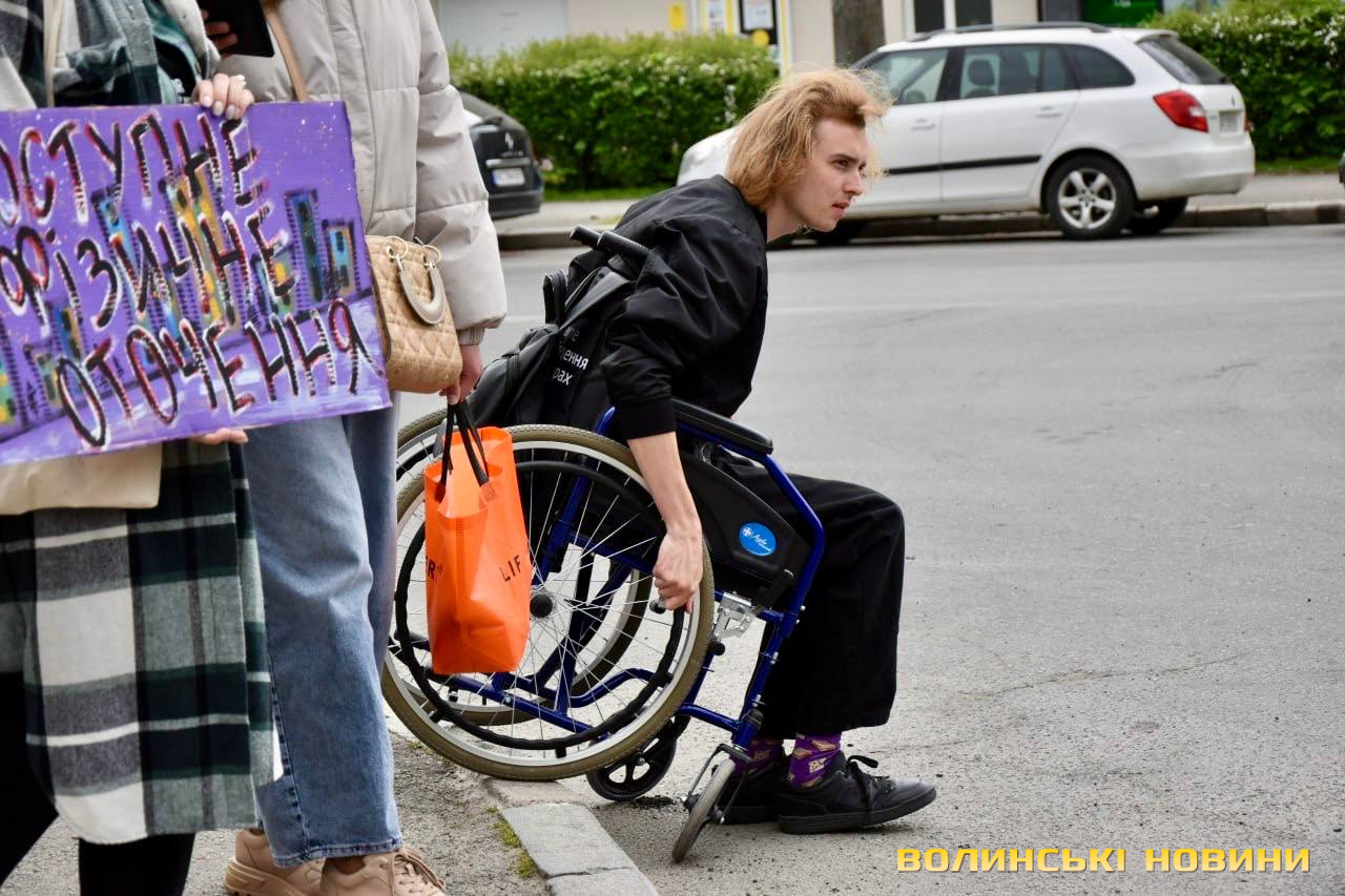 До заходу долучилися близько 100 людей, серед яких були й представники місцевої влади. Вони разом з іншими учасниками протестували маршрути міста на кріслах колісних, у масках та з тростинами, аби на власному досвіді відчути, з якими перешкодами щодня стикаються люди з інвалідністю.Читати ще: Незламні люди, які надихають: четвертий ярмарок ветеранського бізнесу в Луцьку зібрав 40 учасників. Фото