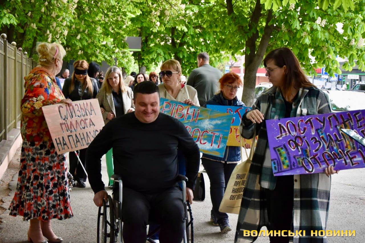 У Луцьку провели «Ходу безбар’єрності»: протестували міські тротуари на візках і з тростинами. Фото