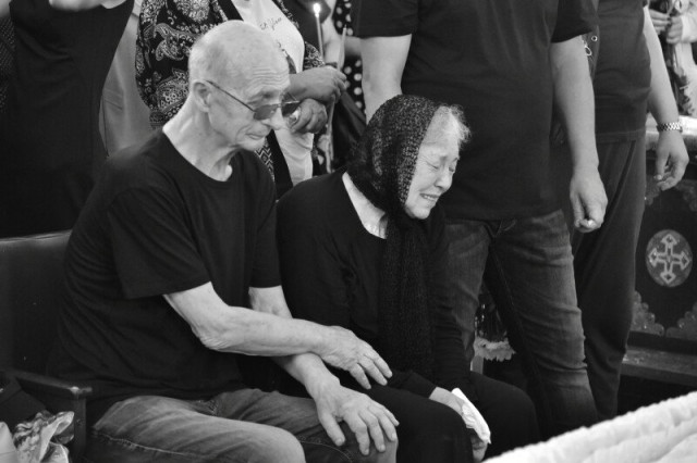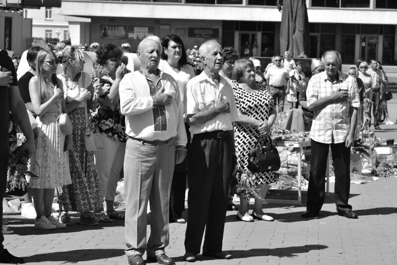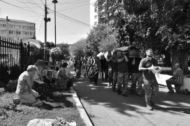 Після завершення панахиди домовину з тілом Героя прощальною ходою пронесли Театральним майданом.Біля фотостенду «Герої Небесної Сотні – Загинули за єдність України» скорботна процесія зупинилася і виконала Державний Гімн.