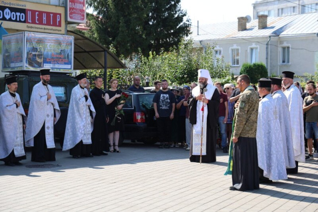 Чин похорону очолив митрополит Луцький і Волинський Михаїл. «Ми сьогодні проводимо в останню путь Героя, душа якого наповнена любов’ю до нас, України. Він віддав своє життя, захищаючи свою рідну землю. Ось вершина любові – подібна до любові Христа, який помер за нас, людей, і воскрес! Віримо, що Україна також переможе, бо правда на нашій стороні. Вічна та світла пам’ять нашому воїну», – зазначив у проповіді він.