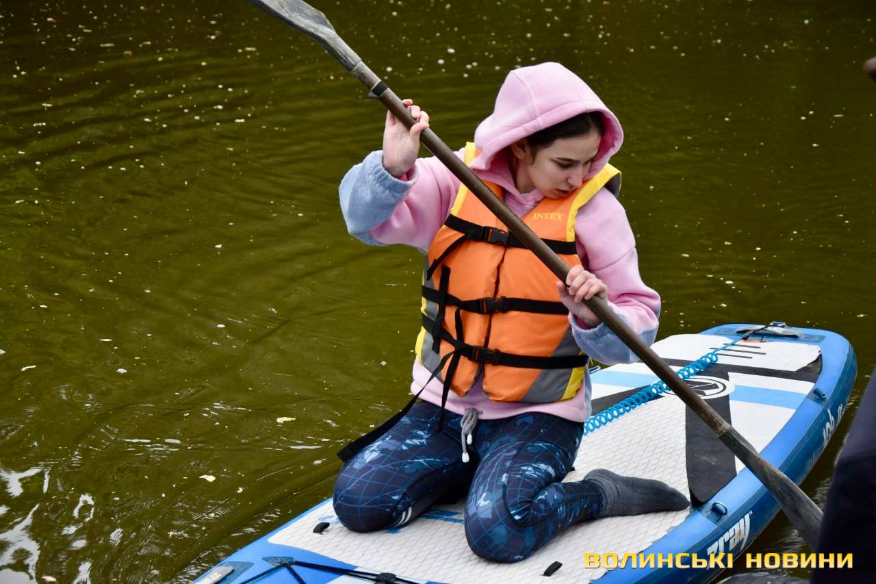 На веслувальній базі «Олімп» у Луцьку провели відкрите тренування з греблі на байдарках та САП-бордах для юних спортсменів з інвалідністю. Цього разу свої сили у водному виді спорту випробували діти з порушеннями слуху, для яких це стало не лише новим досвідом, а й цікавою пригодою. Навчитися правильно керувати човном, тримати баланс і працювати веслом допомагала досвідчена тренерка Любов Клімова.