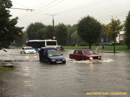 У Луцьку сьогодні – День міста. Втім у небесної канцелярії вочевидь на цей день інші плани. Із самого ранку дощ майже не вщухає. І воно б нічого, але стихія знову перетворила деякі вулиці на річки. Зокрема на перетині проспектів Молоді та Відродження проїжджу частину добряче залило водою.