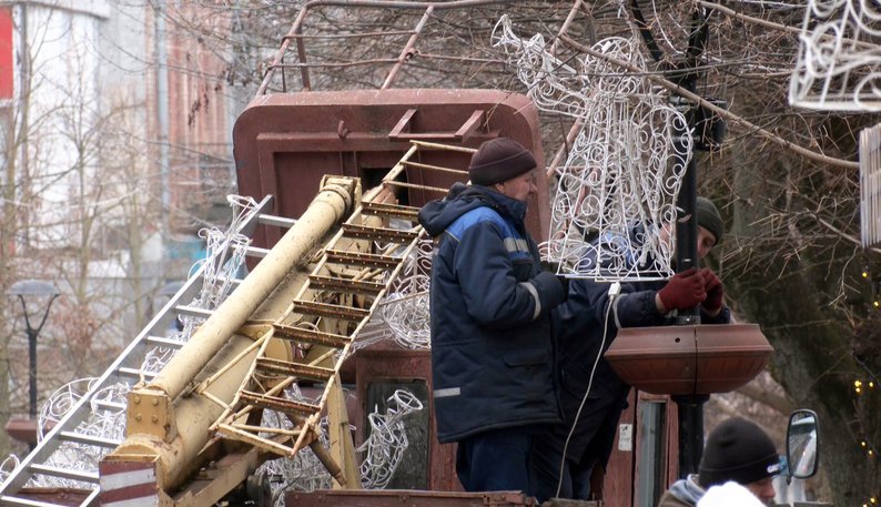Працівники комунального підприємства «Луцьксвітло» розвішують гірлянди на ялинки в центрі міста, а вздовж вулиці Лесі Українки кріплять янголів до ліхтарних стовпів. Ялинкове тріо прикрашатимуть 250 метрів гірлянд жовтого та синього кольорів, по вулиці Лесі Українки встановлять 32 янголи, каже керівник «Луцьксвітла» Валерій Мазін.З його слів, цілим все не збереглось. Гірлянди виходять з ладу через те, що їх постійно вішають та знімають. Підприємство частково закупило нові блоки. Говорить: гроші витратили лише на розхідний матеріал.Читати ще: Як Луцька громада відзначатиме різдвяно-новорічні свята