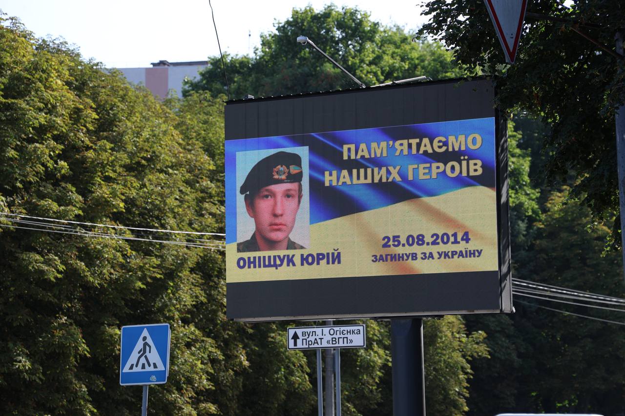 Фотографії та імена військових, які віддали життя за нашу державу, розмістили на рекламних led-екранах у Луцьку з нагоди Дня Незалежності України, щоб вшанувати пам’ять та підтримати родини всіх загиблих жителів Луцької громади з 2014 року і дотепер.