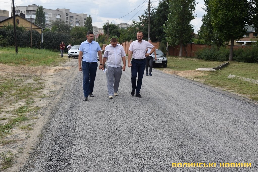 Спочатку оглянули проїзну частину вулиці Петра Маха, де завершені роботи із асфальтування території. На перехресті цієї вулиці в недалекому минулому важко було пройти через зруйновану дорогу, а сьогодні рівний асфальт полегшив життя і мешканцям вулиці, і водіям.