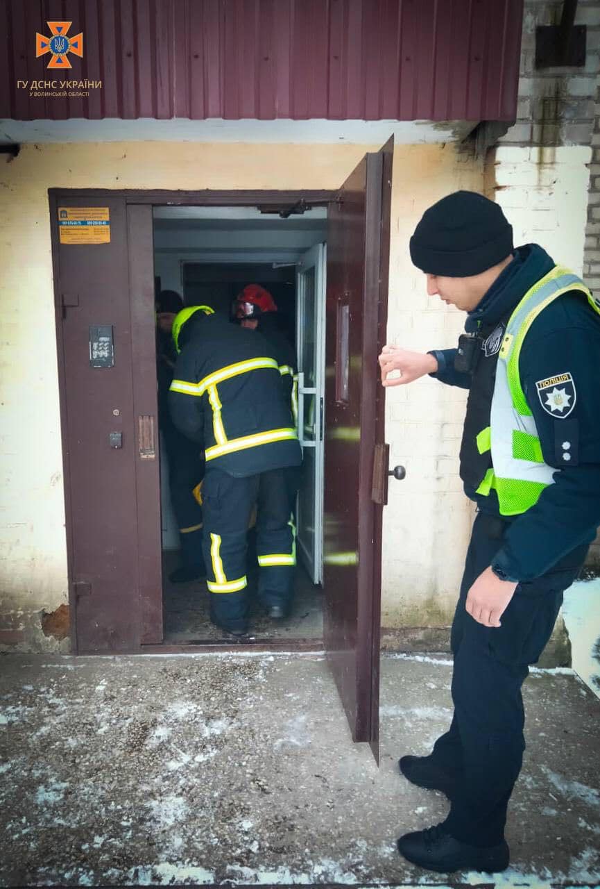 По прибутті на місце виклику рятувальники аварійно-рятувальної частини під наглядом поліції відчинили двері квартири, з якої транспортували потерпілу до карети швидкої допомоги.