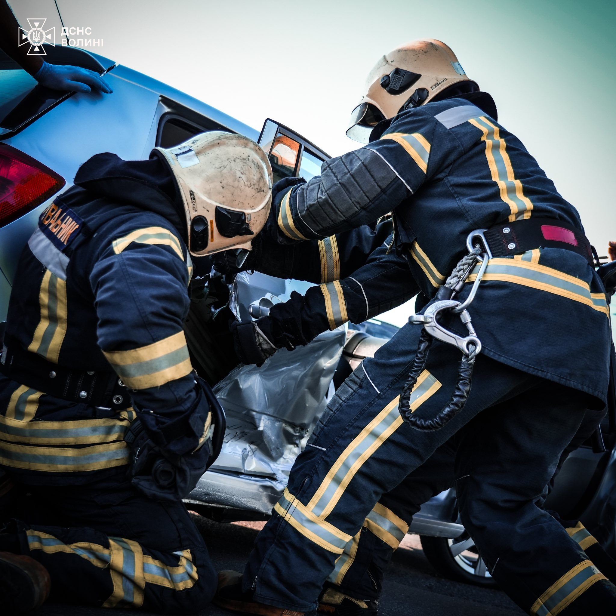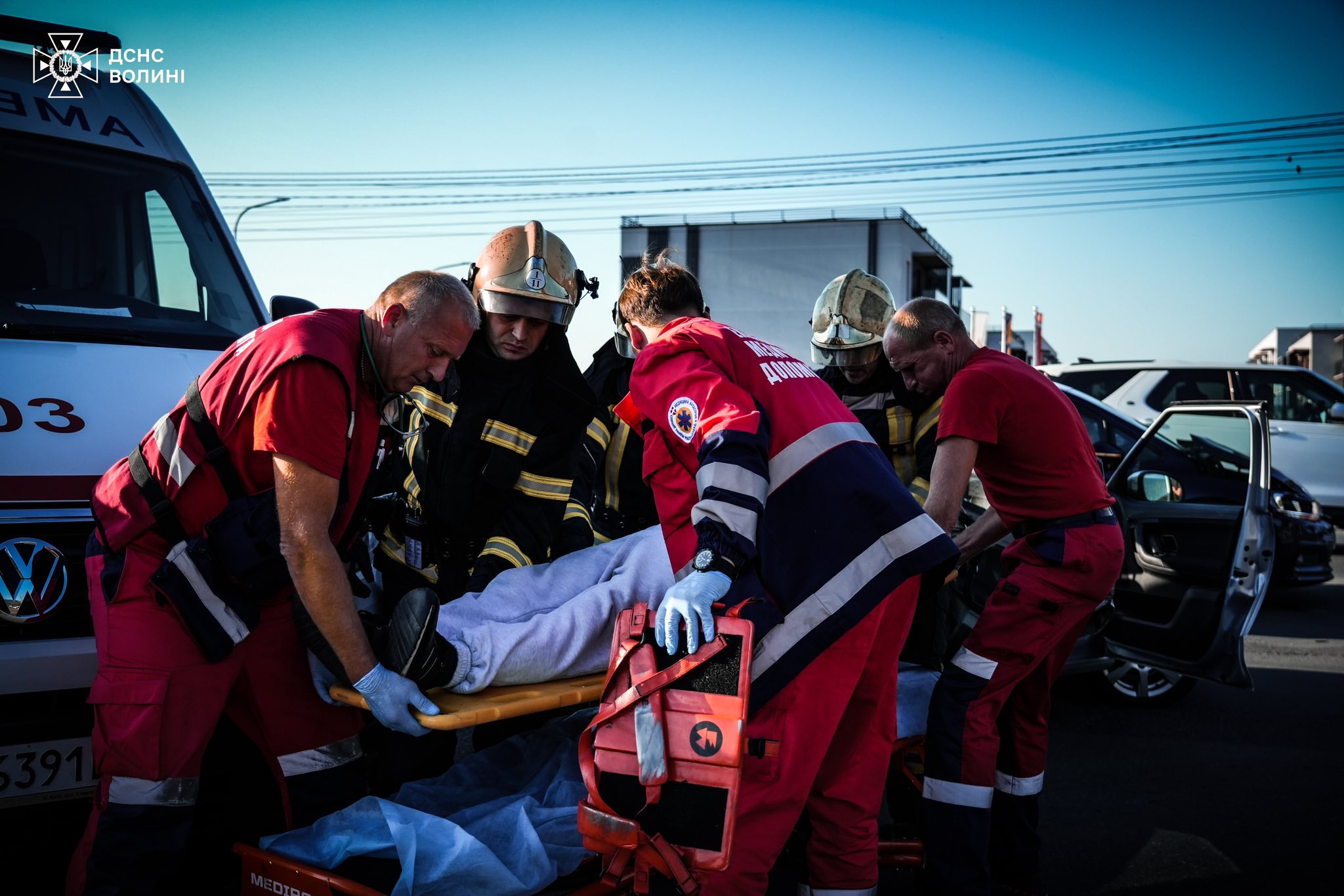 На місце події прибули рятувальники 1-ї державної пожежно-рятувальної частини міста Луцька. Під час розвідки було встановлено, що в одному з автомобілів пасажир опинився затиснутим конструкціями авто та потребував негайної допомоги.