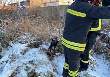 Вранці 14 грудня рятувальники аварійно-рятувального загону спеціального призначення визволили пса, який потрапив у пастку.