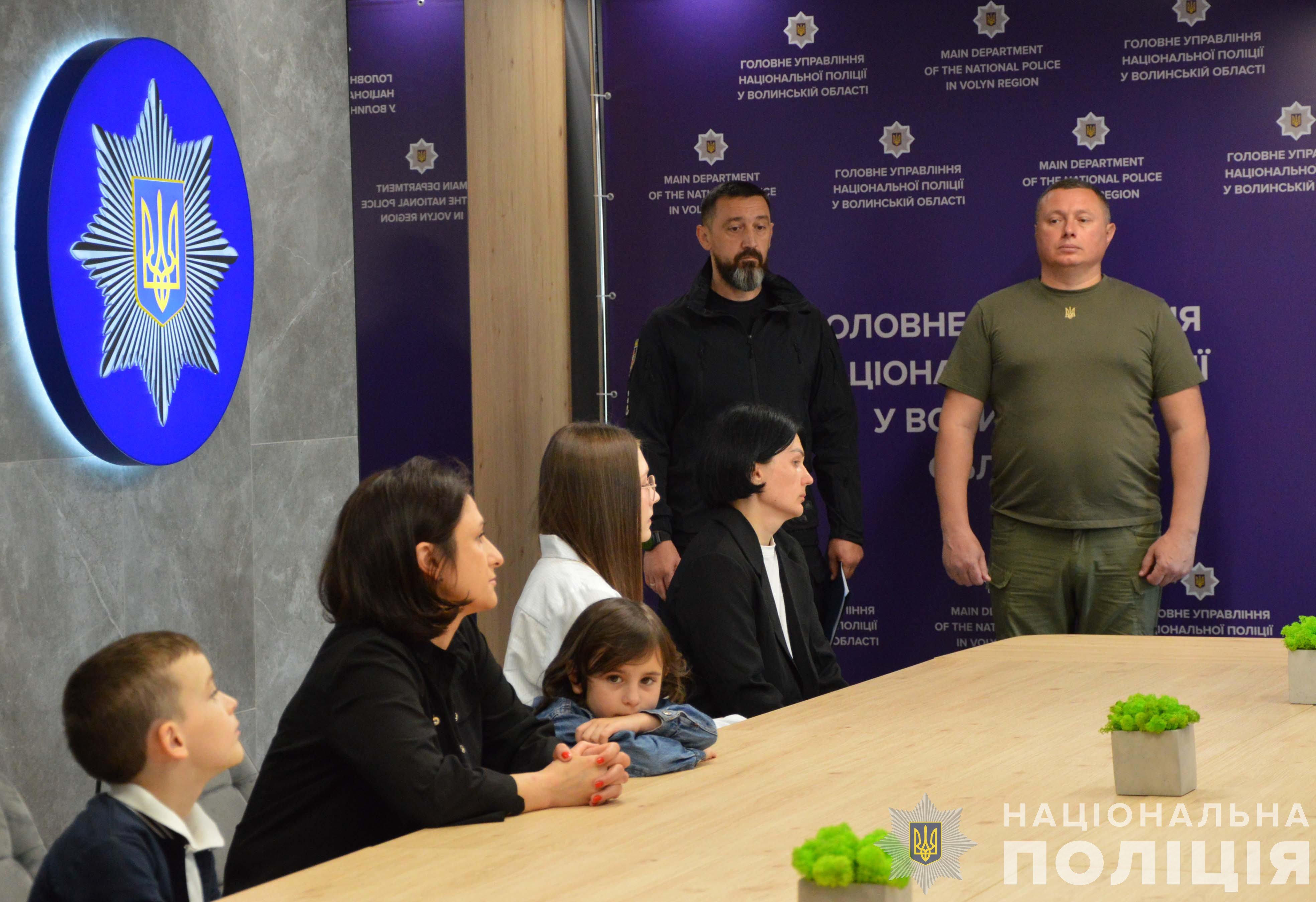«Сьогодні ми впевнено кажемо: ми назавжди здобули незалежність завдяки таким воїнам, як ваші чоловіки, батьки. Дякую вам за Героїв», – сказав В’ячеслав Вусінський. Потому дружинам поліцейських Тетяні Стеблянко та Алісі Гіренко відзнаки Президента «За оборону України» вручили очільник Волинської ОВА Юрій Погуляйко та начальник ГУНП у Волинській області Олег Сліпчук.Голови Луцької міської ради Ігор Поліщук та Ківерцівської міської ради Олександр Ковальчук запевнили рідних у всебічній підтримці з будь-яких питань.