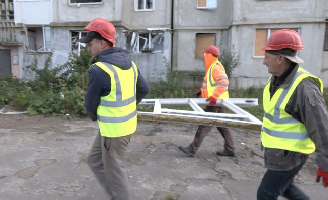 «На першому етапі максимально прибираємо сміття з середини будинку для того, щоб вже підійшла важка техніка і почала остаточно розбирати цей під’їзд», – сказав посадовець.П’ятеро працівників бригади, які 1 жовтня приступили до роботи, зміцнюють будинок між поверхами.