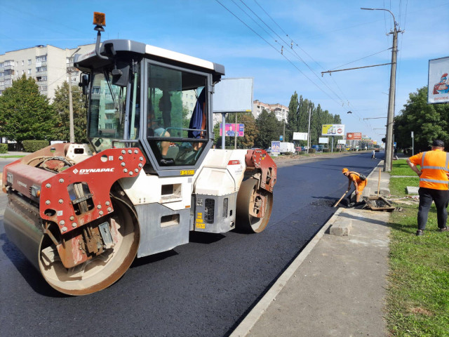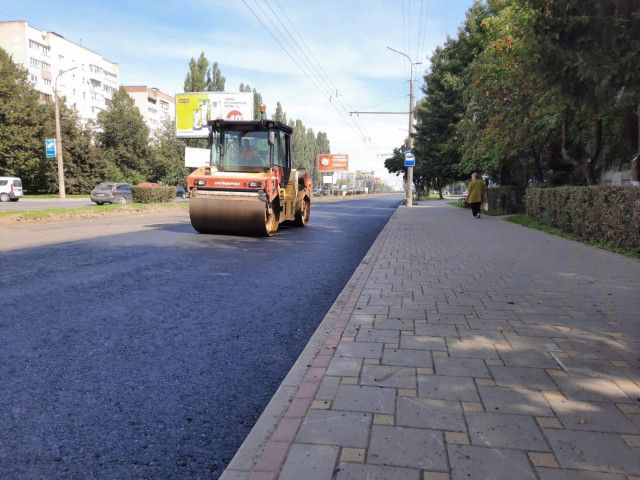 «Вкладаємо нижній шар асфальту на непарній стороні пр. Соборності на відрізку від перехрестя з пр. Відродження до перехрестя з пр. Молоді.