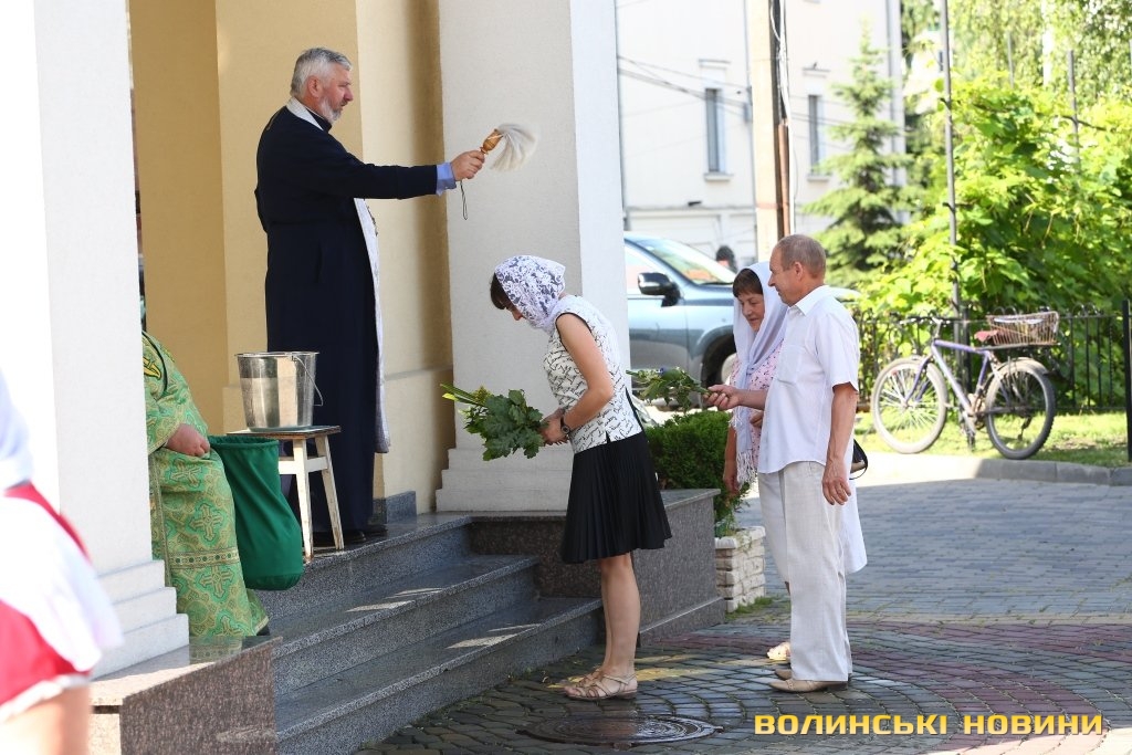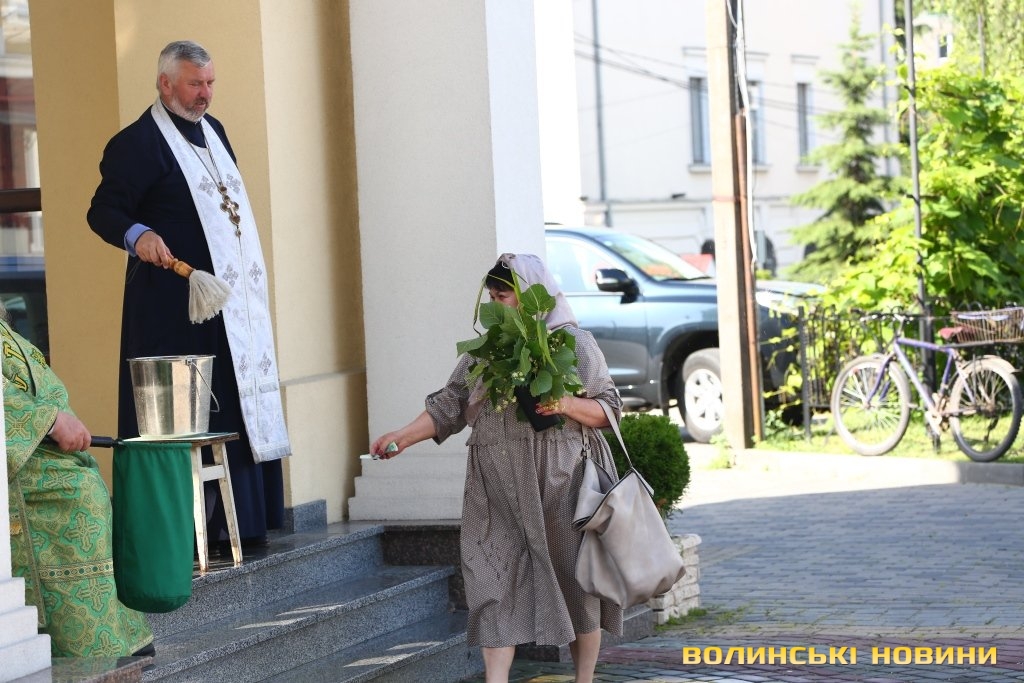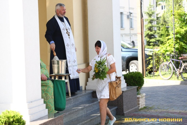 Радісні обличчя вірян, спека та освячення зілля: у храмах Луцька розпочали відзначення Трійці.