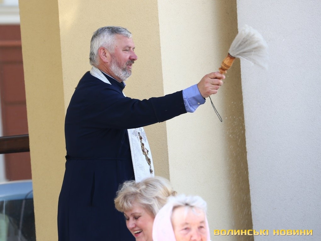 Освячення розпочали на майдані перед собором, куди приходять дедалі більше лучан цілими родинами.