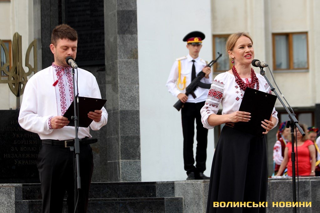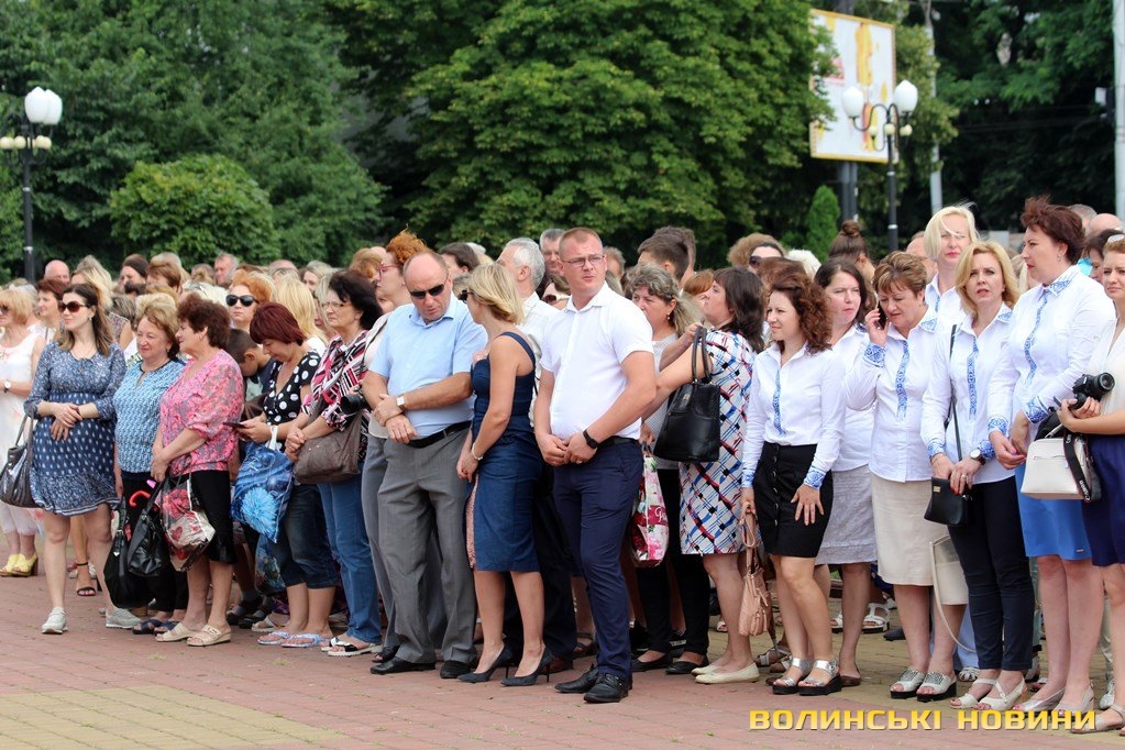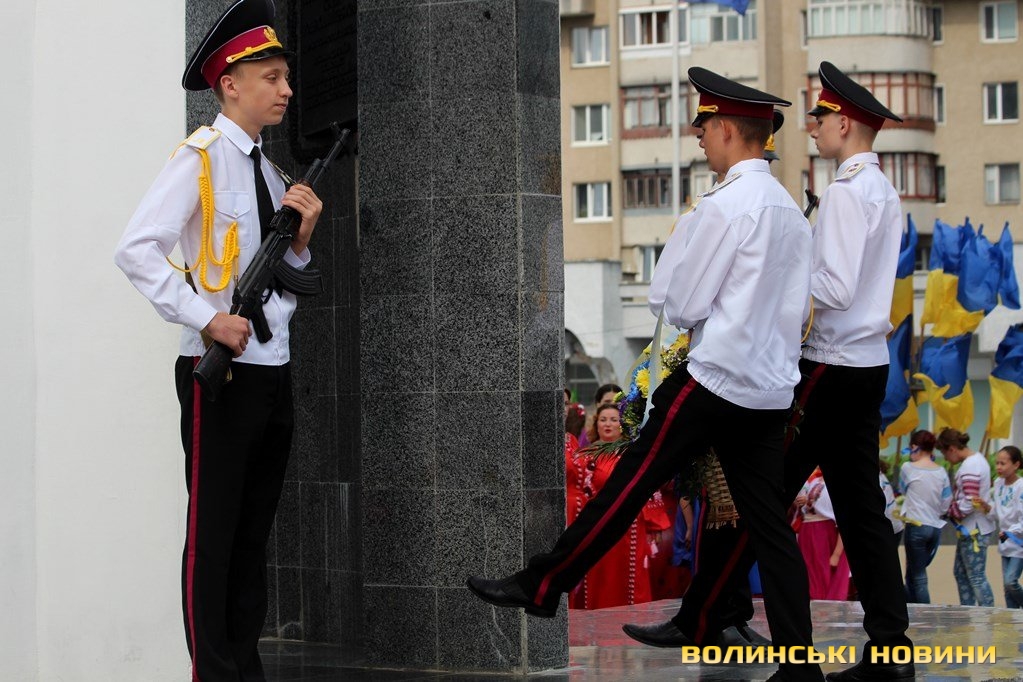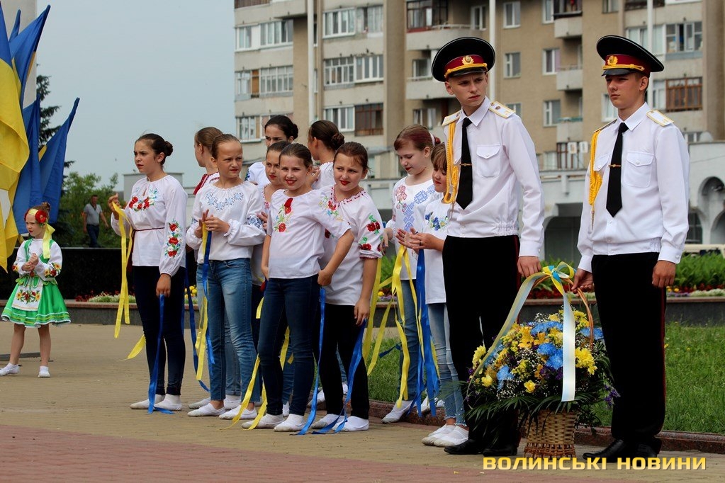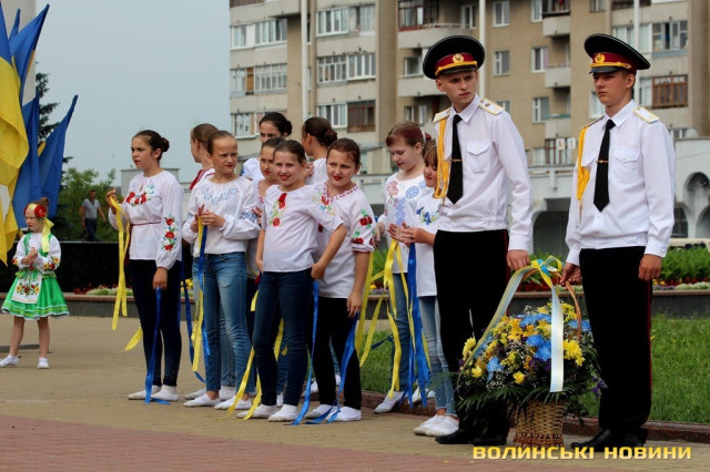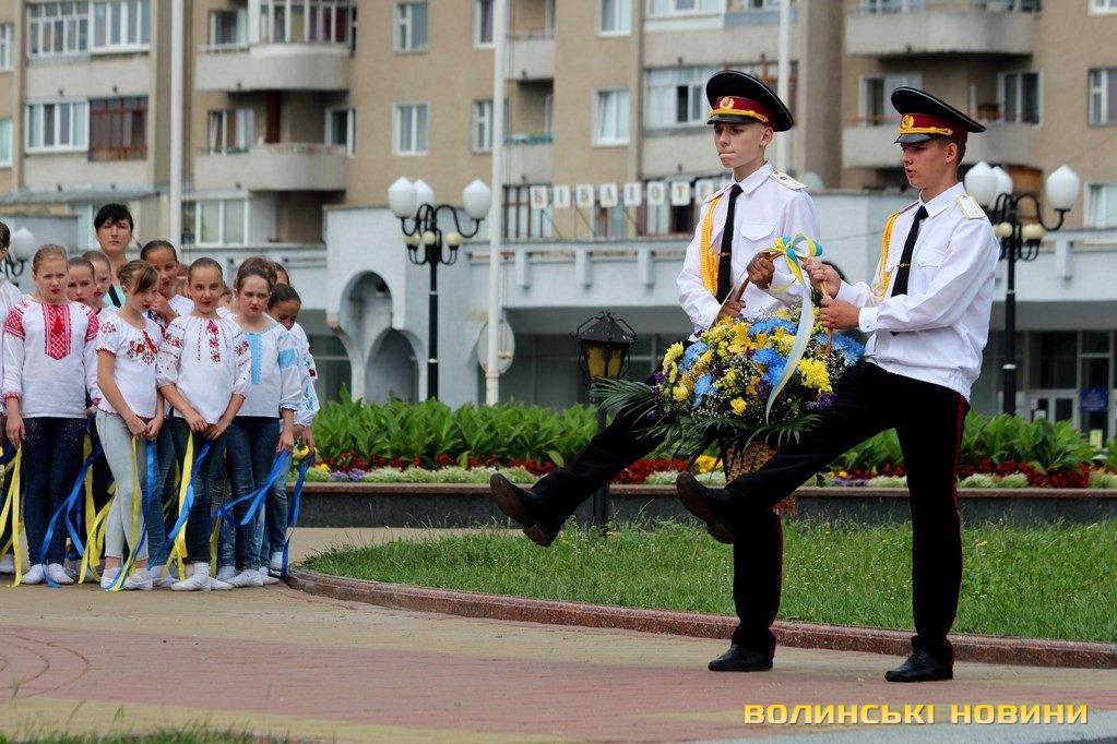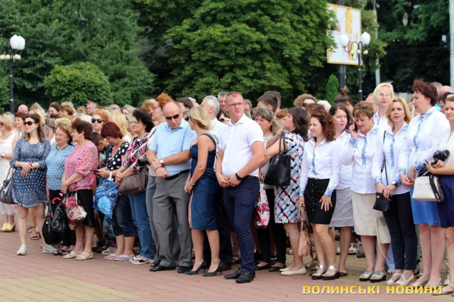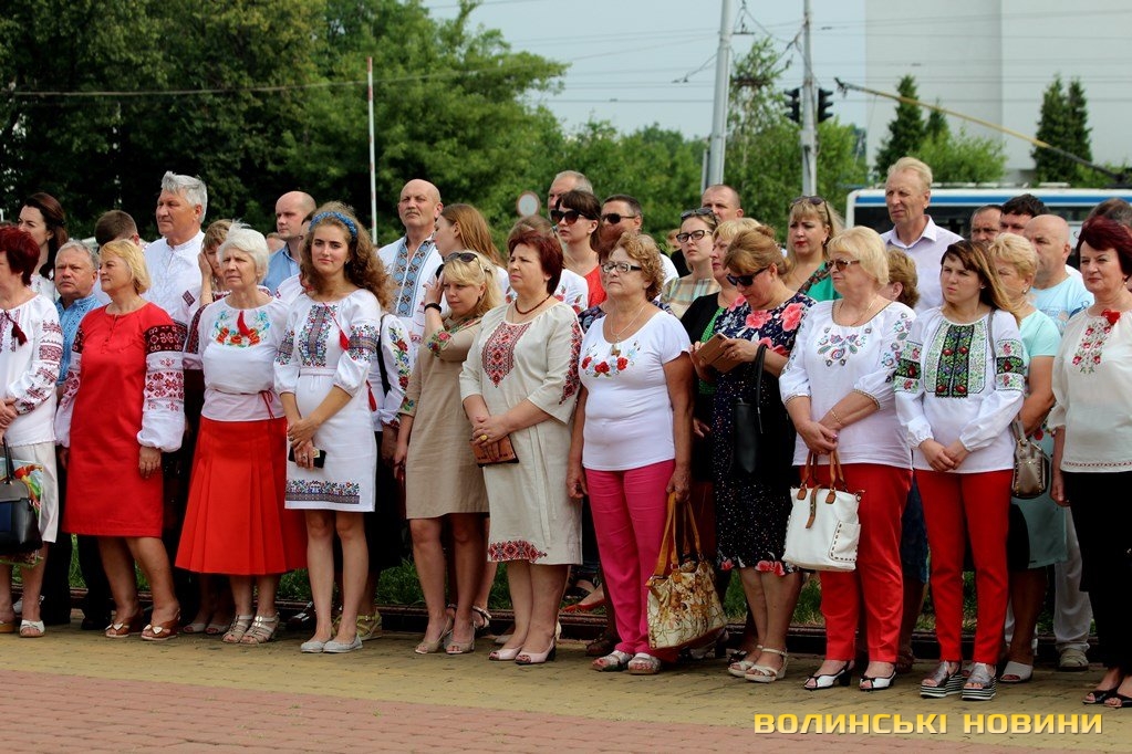 Так, на площі перед облдержадміністрацією зібралося чимало людей, багато з яких були у вишиванках. Зокрема на святкування завітали представники обласної та міської влади, військові, духовенство та представники громадськості.Саме дійство розпочалося з виконання Державного Гімну України, а потому присутні вшанували борців за волю та незалежність України хвилиною мовчання та поклали квіти до пам’ятника. Відзначимо, що впродовж святкування ведучі неодноразово згадували витяги з Конституції України.Як зазначив тимчасово виконуючий обов’язки голови Волинської обласної державної адміністрації Олександр Киричук, День Конституції України – це велике національне свято для українців.