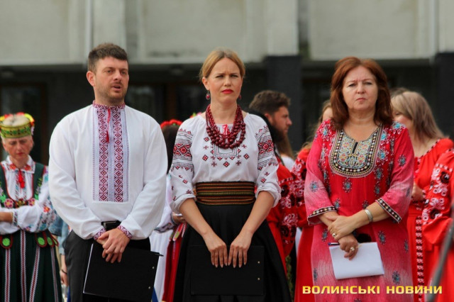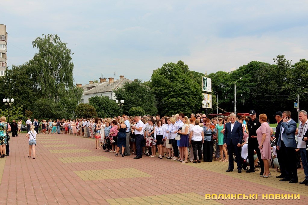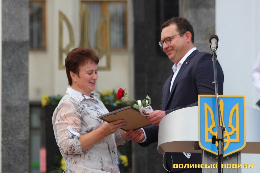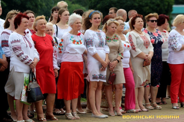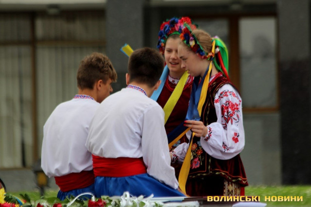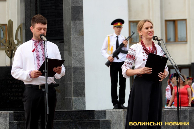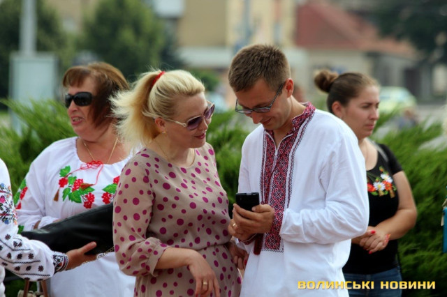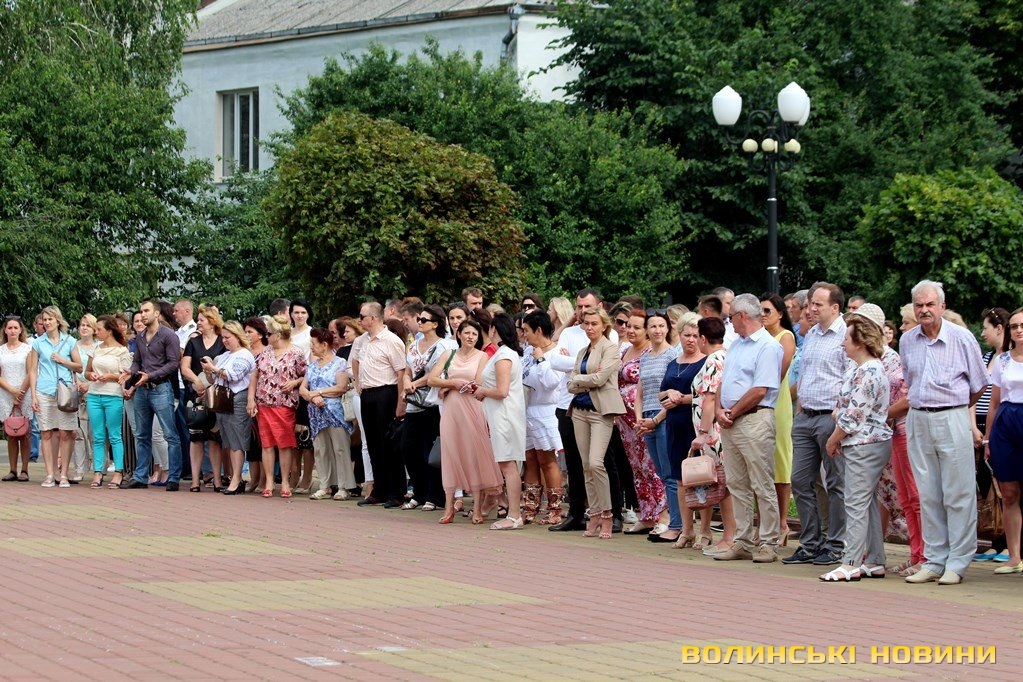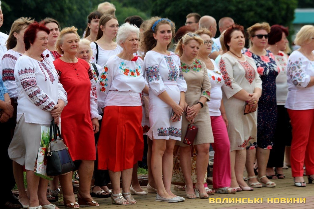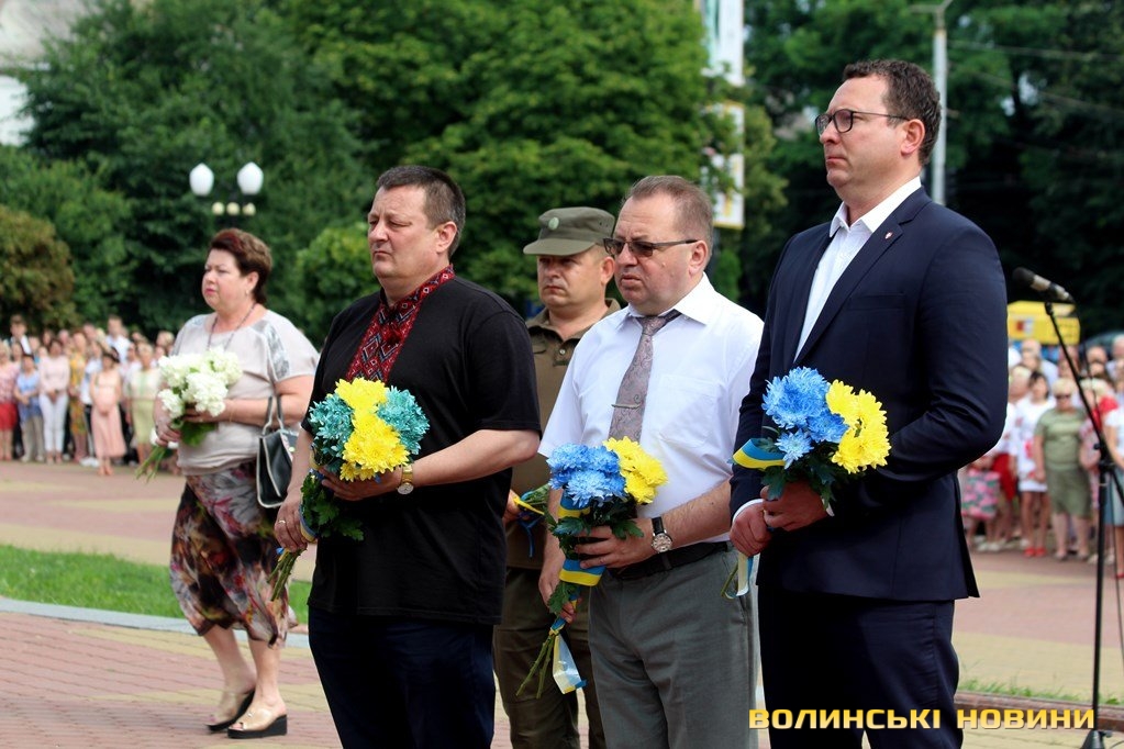 Так, на площі перед облдержадміністрацією зібралося чимало людей, багато з яких були у вишиванках. Зокрема на святкування завітали представники обласної та міської влади, військові, духовенство та представники громадськості.Саме дійство розпочалося з виконання Державного Гімну України, а потому присутні вшанували борців за волю та незалежність України хвилиною мовчання та поклали квіти до пам’ятника. Відзначимо, що впродовж святкування ведучі неодноразово згадували витяги з Конституції України.Як зазначив тимчасово виконуючий обов’язки голови Волинської обласної державної адміністрації Олександр Киричук, День Конституції України – це велике національне свято для українців.