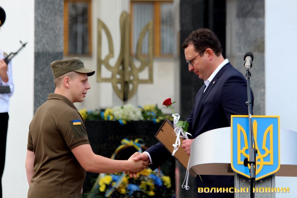 «23-ю річницю ухвалення святкує основний закон нашої держави, де закріплені одвічні фундаментальні цінності українців – це свобода, справедливість, гідність, демократія, правова держава та мир. Безперечно, історія становлення української конституції бере початок ще з часів Володимира Великого, це боротьба багатьох поколінь свідомих українців, серед яких Богдан Хмельницький і Михайло Грушевський. За цей час наша держава пройшла безліч випробувань, змінившись. Ухвалення Конституції України 1996 року навіки закарбувало прагнення українського народу жити у власній суверенній державі. Усім своїм змістом вона спрямована на забезпечення суверенітету України, становлення її, як незалежної правової держави», – наголосив Олександр Киричук, подякувавши військовим, які захищають Україну від ворога, що посягає на основи конституційного права та територіальну цілісність нашої держави.Натомість перший заступник голови Волинської обласної ради Олександр Пирожик відзначив, що Конституція України – це основний закон у набагато глибшому розумінні, ніж ми це сприймаємо й уявляємо.