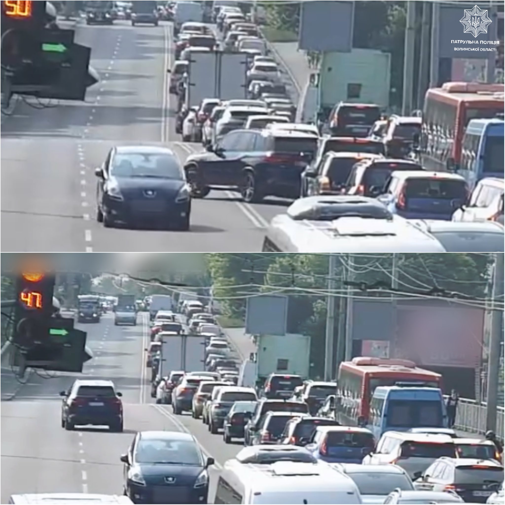 У Луцьку розшукали водія, який перетнув суцільну смугу, обминаючи затор
