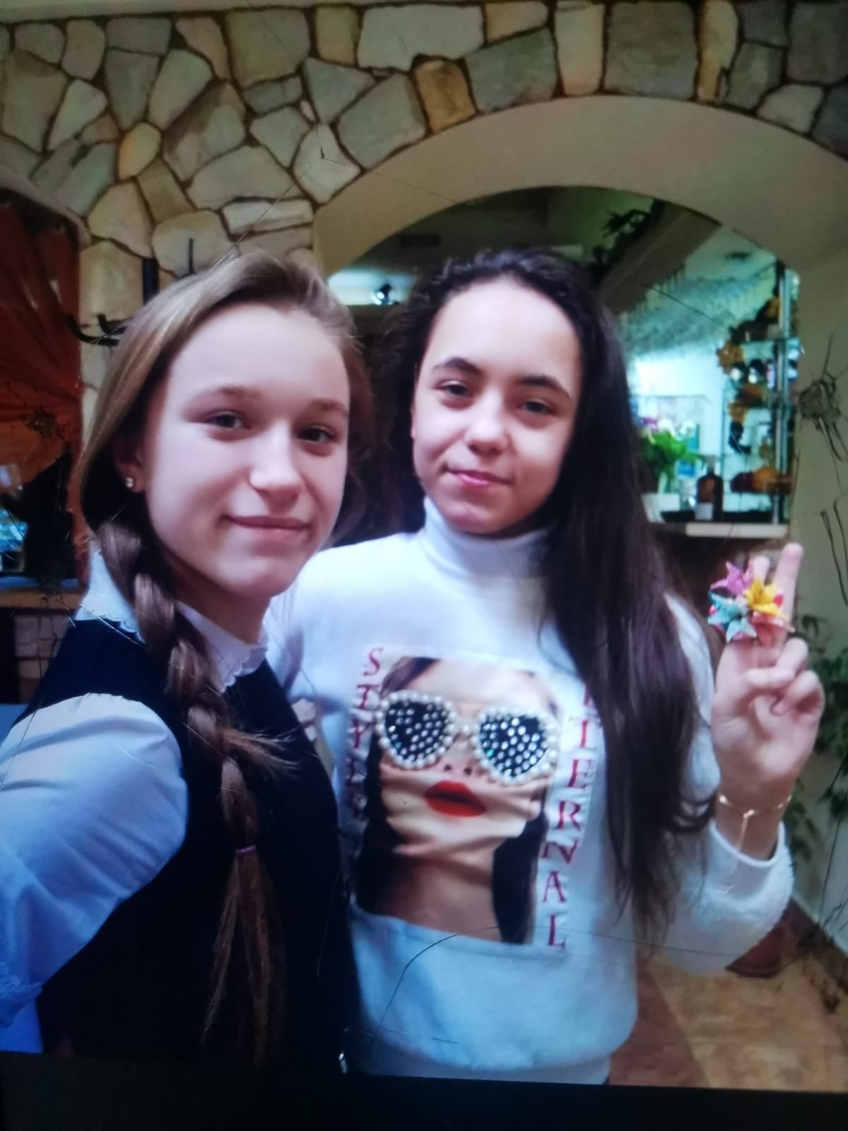 Шеремет Софія: довге світло-русе волосся, худорлявої тілобудови, була одягнена в голубу куртку по пояс, чорні лосіни, білі кросівки.