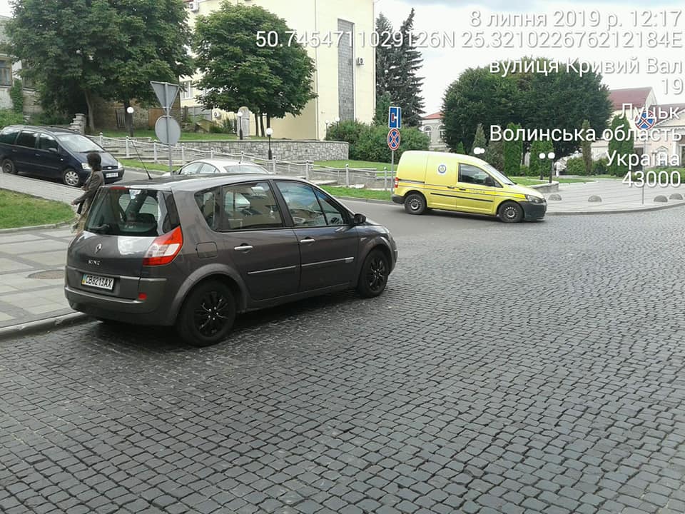 8 липня 2019 року на вулиці Кривий Вал старший інспектор виявив авто «Renault Scenic», державний номерний знак якого «СВ8213АХ», що було припарквоане з порушенням. На порушника було складено постанову.