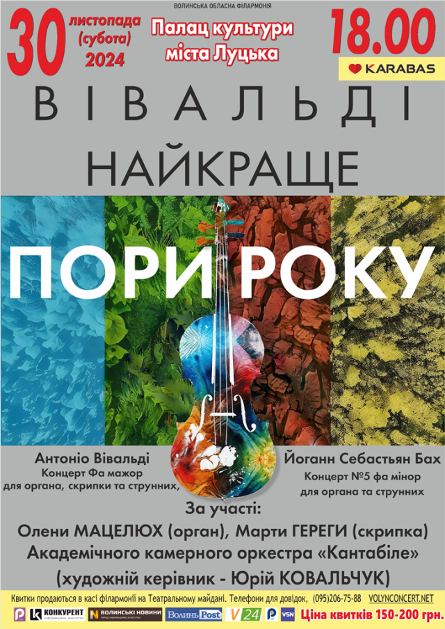 30 листопада о 18:00 в Палаці культури міста Луцька відбудеться концерт «Вівальді. Найкраще. Пори року».