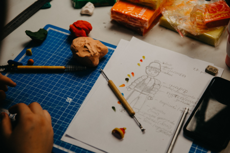 На кількагодинних заняттях діти ліпитимуть з пластиліну героїв та декорації, а згодом разом зі своїми наставниками Мар’єю та Леонідом Тивонюками анімуватимуть персонажів.