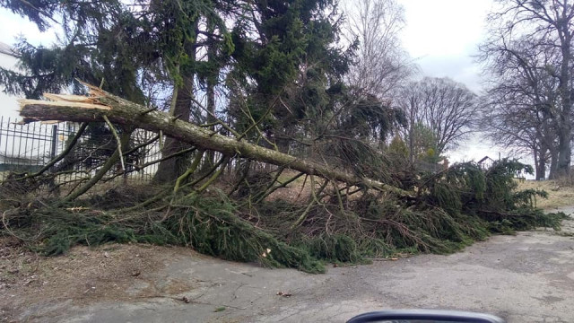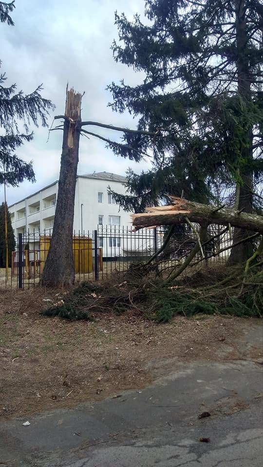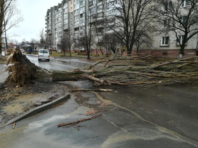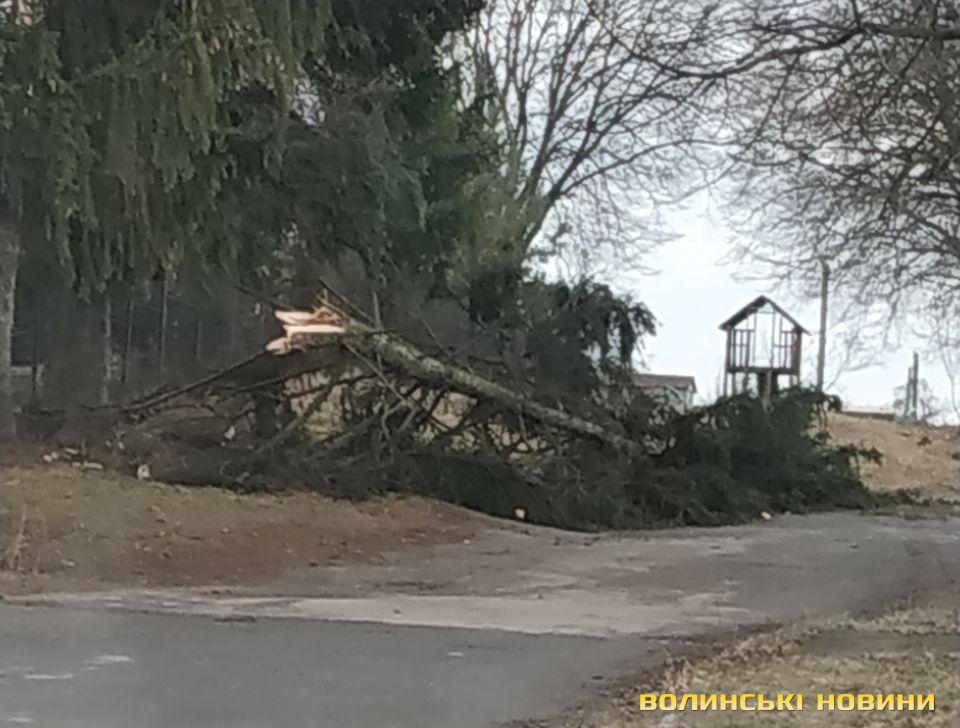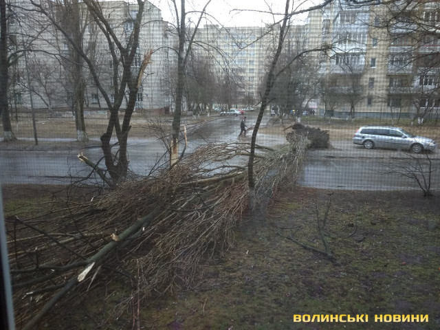 «Вітер зламав десятиметрову ялинку, велика її частина лежить на проїжджій частині. Це добре, що на момент падіння дерева поруч не було ні автомобіля, ні людини», - розповідає лучанин Віталій, на очах у якого все трапилось.Як повідомив у власному коментарі Інформаційному агенству Волинські Новини начальник департаменту ЖКГ Луцької міської ради Юрій Крась, сьогодні через вітер впала велика тополя у Луцьку на вулиці Кравчука.Також негода повикорчовувала й дерева на вулиці Гнідавській. Усі ці дерева в подальшому приберуть комунальники.