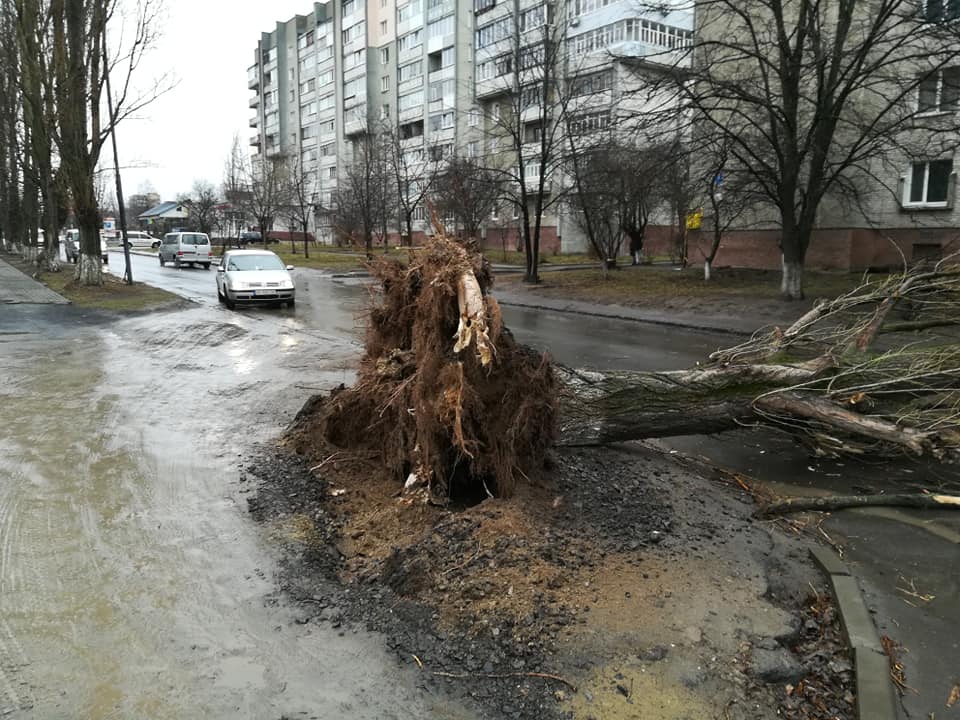 У Луцьку шквальний вітер повалив величезну ялинку і тополю