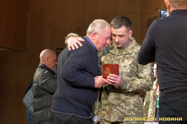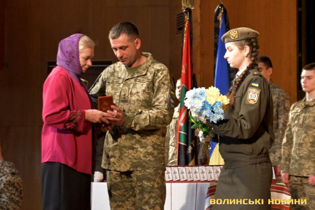 З-під Куп’янська, щоб вручити посмертні нагороди Героїв їхнім рідним, до Луцька приїхав заступник командира 14-ї окремої механізованої бригади імені князя Романа Великого з морально-психологічного забезпечення, підполковник Василь Лапчук.