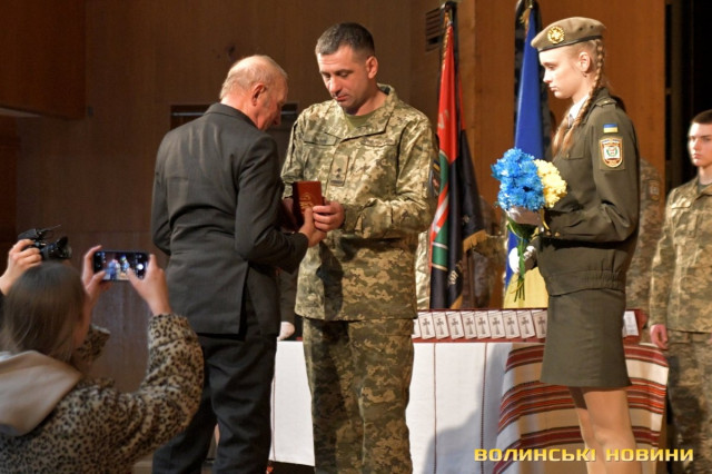 У Луцьку сім’ї Героїв із князівської бригади отримали їхні посмертні відзнаки «Навіки в строю». Фото