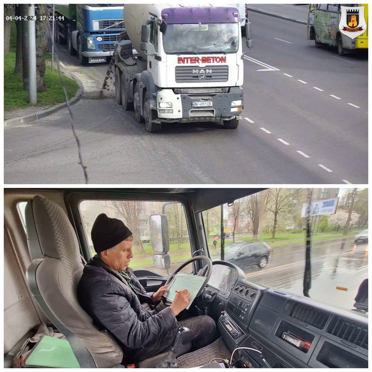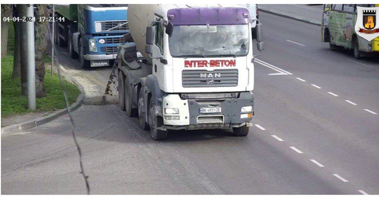 У Луцьку склали протокол на водія, який забруднив дорогу бетоном