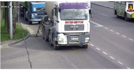 Диспетчер відділу «Центр безпеки міста Луцьк» за допомогою камер відеоспостереження виявив забруднення проїзної частини бетонною сумішшю на вулиці Ковельській.