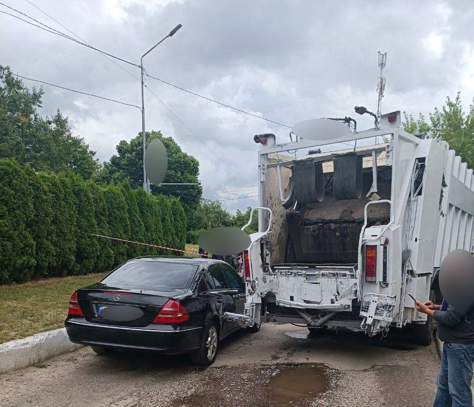 У Луцьку сміттєвоз наїхав на припаркований Mercedes