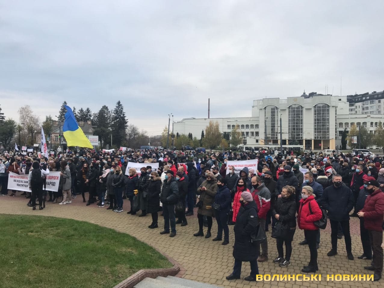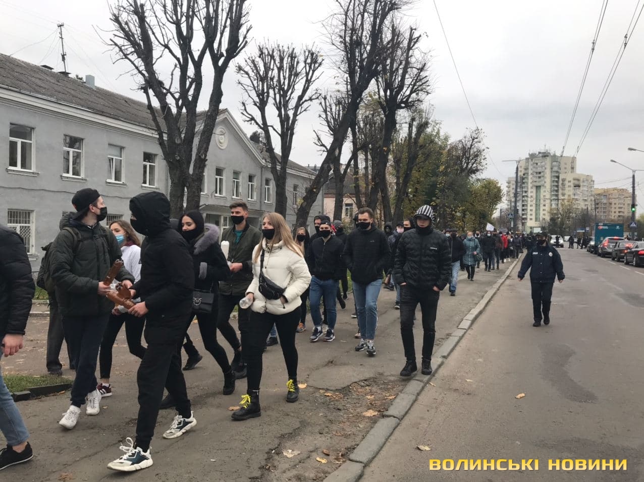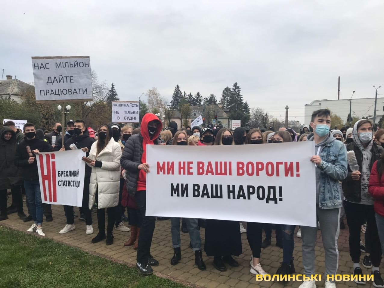 Опісля мітингарі пішли проспектом Волі до приміщення Головного управління Нацполіції області, аби передати звернення міністру МВС Арсену Авакову.Нагадаємо, аби запобігти подальшому стрімкому поширенню коронавірусу, на Волині обмежили час роботи закладів громадського харчування. Усі кафе та ресторани повинні працювати з 7.00 до 22.00. Також планують запровадити карантин вихідного дня, який передбачає, що в суботу та неділю заклади працюватимуть лише на виніс.