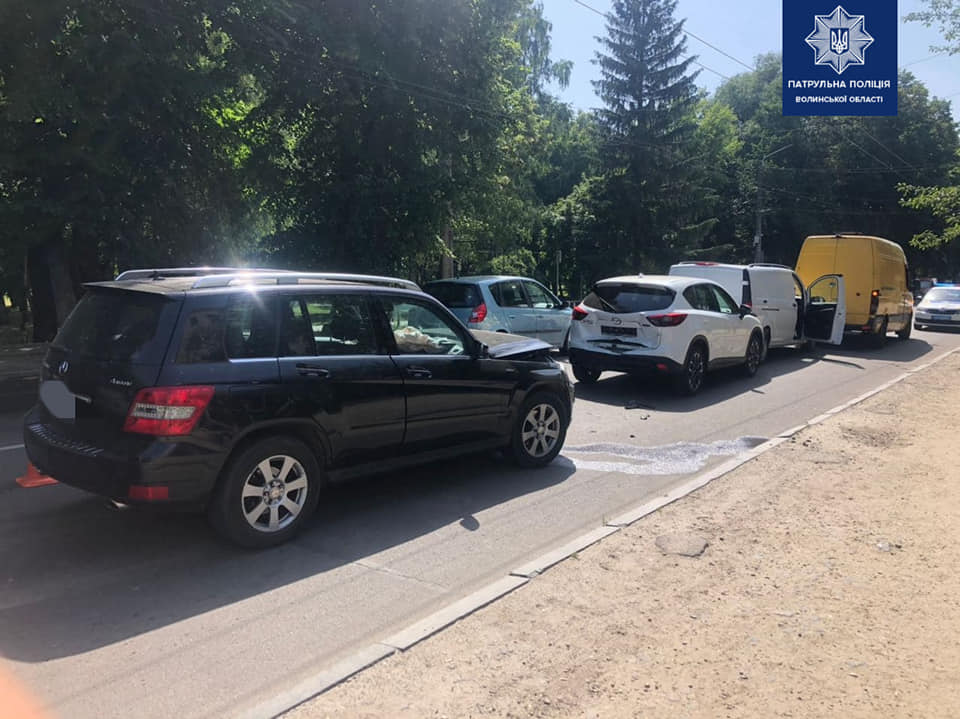 Поліцейські, які прибули на місце події, встановили, що водій Mercedes-Benz GLK 220 не вибрав безпечної швидкості, не дотримався безпечної дистанції та здійснив зіткнення з автомобілем Mazda CX-5. Останній, своєю чергою, за інерцією здійснив зіткнення з Mercedes-Benz Vito, а той – з Volkswagen Crafter. В автопригоді ніхто не травмувався, лише автомобілі зазнали механічних пошкоджень.
