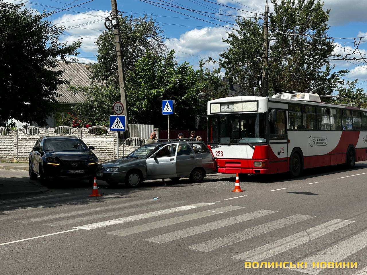 Зіткнення сталося близько 15 години, коли водій Lexus, виїжджаючи із другорядної дороги на головну, зіткнувся з автівкою ВАЗ. А тролейбус, що рухався за ВАЗом, своєю чергою в’їхав у нього.