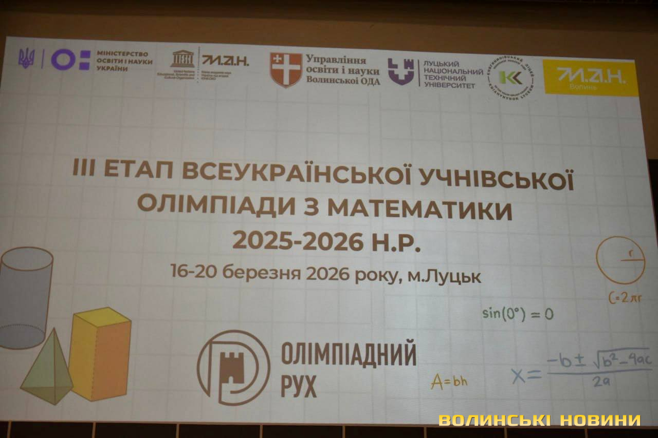 З 16 по 20 березня на базі Луцького національного технічного університету проводиться третій етап Всеукраїнської учнівської олімпіади з математики 2025-2026 н.р. За підсумками змагань буде обрано представників від України на олімпіадах міжнародного рівня.
