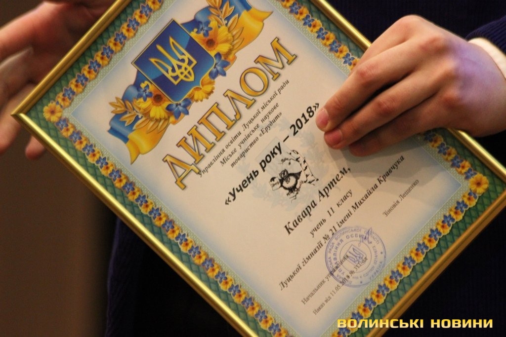 Звання «Учень року 2018» отримав Артем Кавара, який навчається у Луцькій гімназії №21 імені Михайла Кравчука.