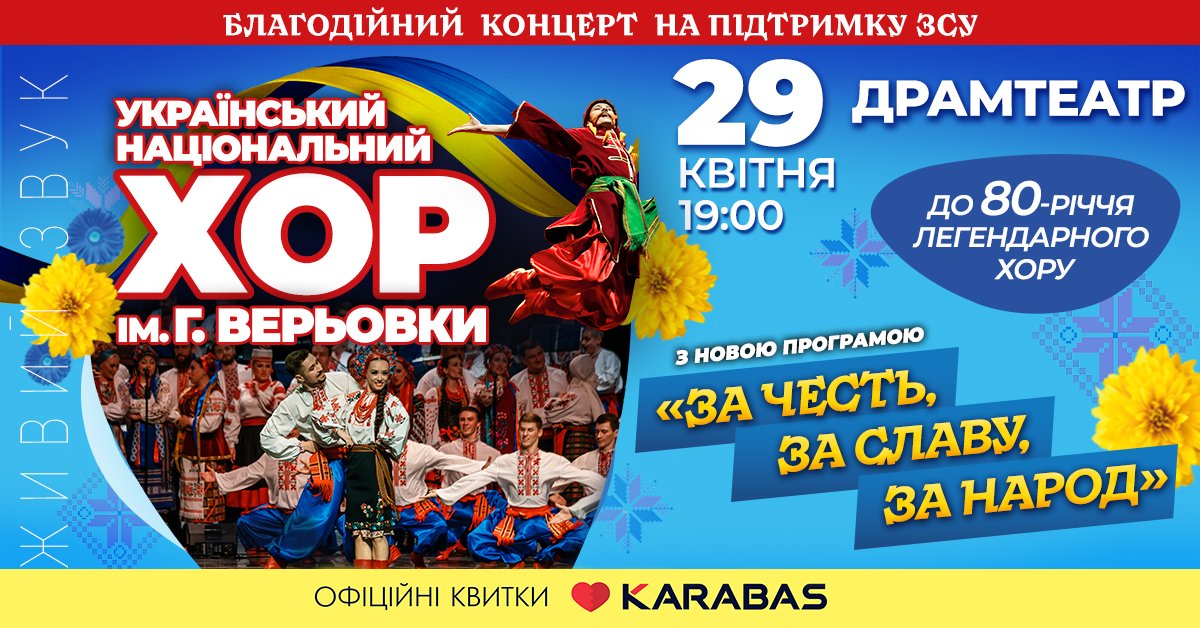 Колектив, відомий у найдальших куточках світу! Унікальна творча формація, яка вже десятки років знайомить світ з українським музичним спадком! 29 квітня в Луцьку на сцені Драмтеатру виступить легендарний хор ім. Григорія Верьовки.