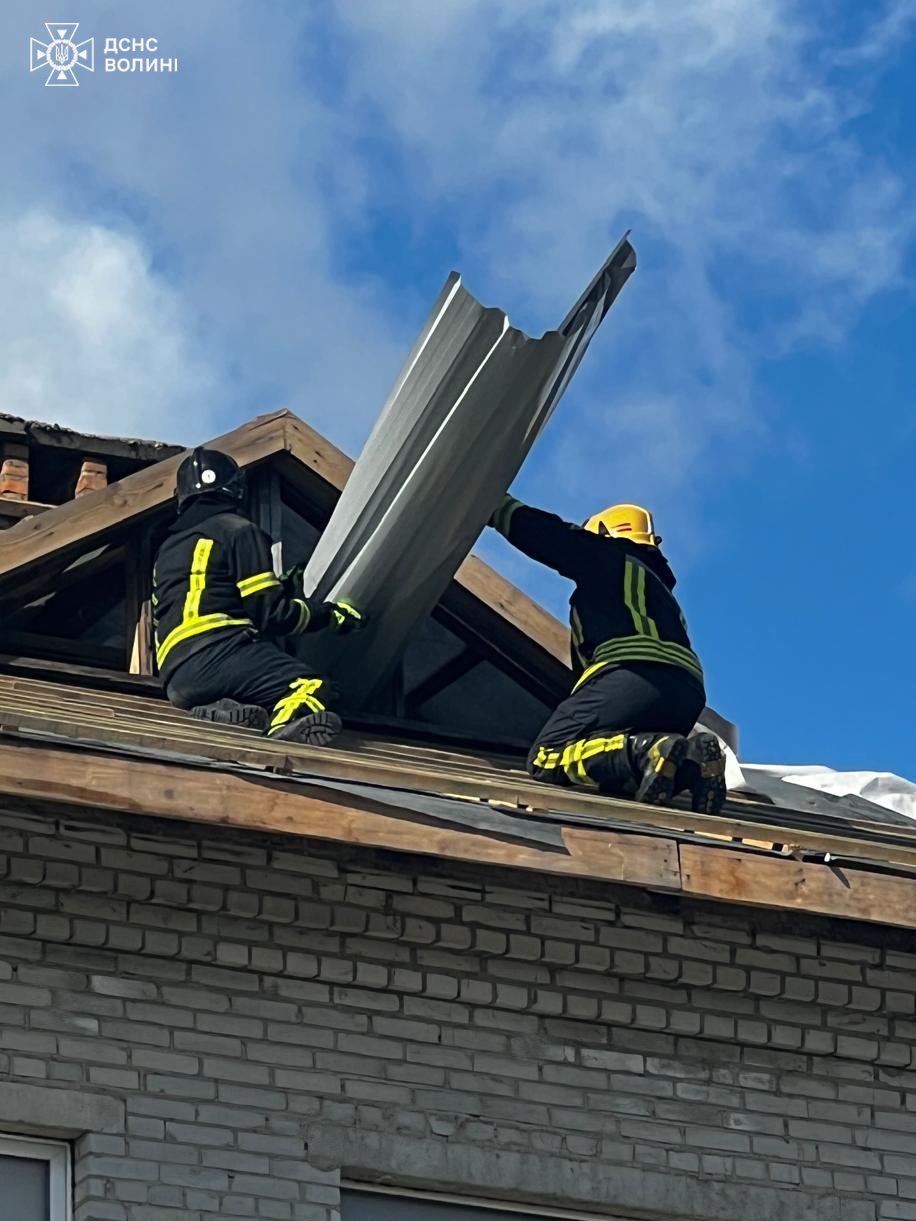 Роботи з демонтажу небезпечних елементів покрівель проводилися у будинку культури в с. Брани Луцького району, в одній зі шкіл м. Луцька, у медичному закладі селища Локачі та у публічній бібліотеці м. Володимира.